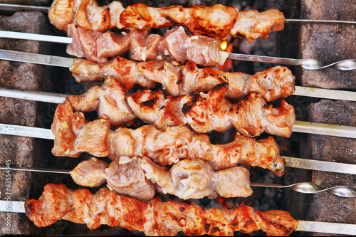 mutton meat made as a shashlik on the outdoor country pick-nick