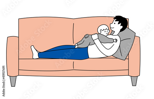 baby, family, man, child rearing, father, people, smile, father, father, japanese, children, sweet, go to bed, lifestyle, family, parental, young, father, illustration, vector, variation, pose