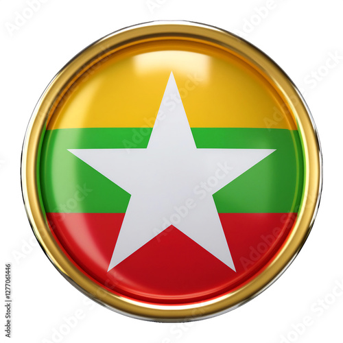 ミャンマーの国旗のブローチ。白背景。(Myanmar flag brooch on white background.)