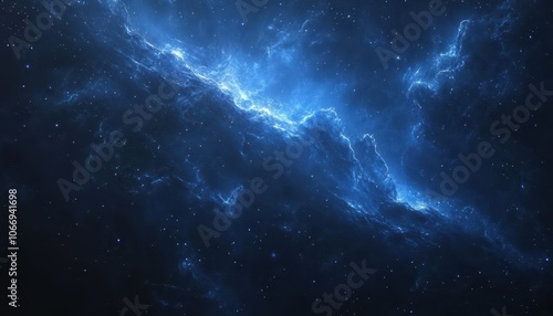 Mysterious chaos of a vibrant blue nebula in deep space at nighttime