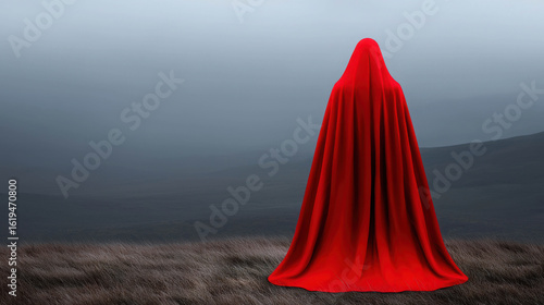 mystery, figure, cloak, red, landscape, fog, solitude, nature, emotion, atmosphere, dramatic, eerie, minimalist, traveling, adventure, character, colours, scene, isolation, inspiration, fantasy, art, photo, creative, surreal, mist, background, aethereal, silhouette, exploration, freedom, beauty, horizon, calm, quiet, stillness, visual, design, high-coloured, lonely, perspective, artistic, culture, interpretation, storytelling