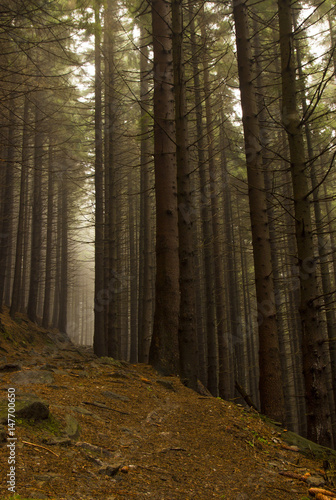 Mysterious foggy forest with a fairytale look