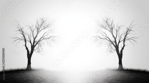 tree, landscape, fog, bright, nature, silhouette, contrast, environment, calmness, outdoors, peaceful, minimalism, beauty, scene, stillness, dusk, serenity, plant, life, branch, foliage, light, wilderness, atmospheric, calm, isolation, texture, growth, zen, quietness, attention, horizon, sunlight, emotional, rural, grey, silence, scenic, vision, mood