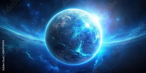 mystery, planet, blue, glow, space, celestial, fantasy, vibrant, science fiction, universe, astronomy, extraterrestrial, eerie, magical, aethereal, aglow, unknown, cosmic, futuristic, exploration, surreal, mesmerizing, outer space