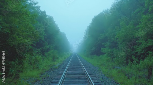 train track, fog, wilderness, early morning, tranquil, journey, adventure, mysterious, serene, light, nature, landscape, solitude, peaceful, rail, path, mist, forest, track, eerie, railway, exploration, twilight, dawn, tree, meditation, calmness, timberland, atmospheric, stillness, perspective, countryside, escape, travel, scenic route, aethereal, quiet, enchanting