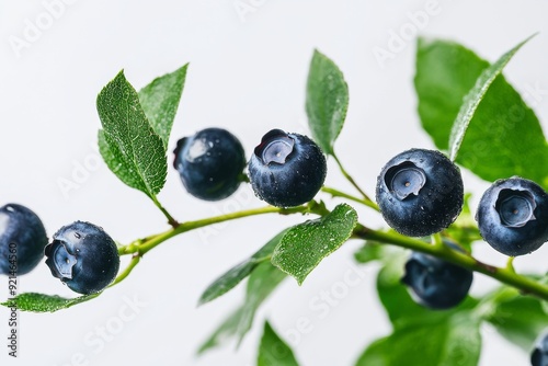 Mystic photo of Northern Highbush Blueberry on the vine, isolated on white background