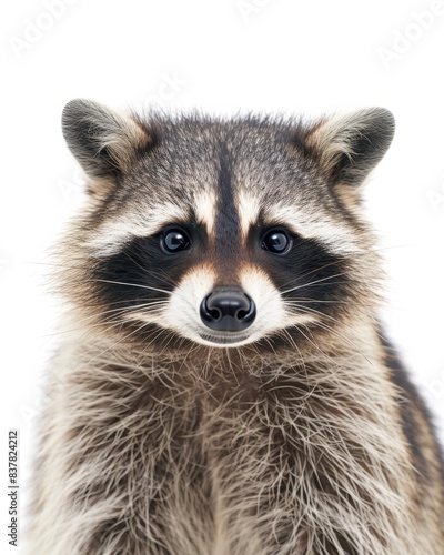 Mystic portrait of Common Raccoon, copy space on right side, Anger, Menacing, Headshot, Close-up View Isolated on white background