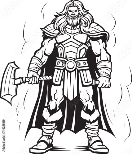 Mystic Warrior Vector Hero with Axe Eternal Protector Long Haired Axe Design