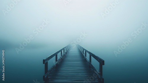 Mystical and atmospheric image of a bridge fading into the mist symbolizing the unknown and the passage from one state to another The copy space allows for placement of text or graphic elements
