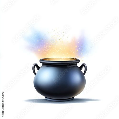 Mystical Cauldron: An illustration of a black cauldron, overflowing with vibrant, magical energy, hinting at a realm of enchantment and wonder.
