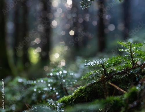 forest, dawn, mystical, dew, leaf, nature, serene, peaceful, morning, light, soft, organic, landscape, environment, foliage, mist, mystery, tranquil, atmospheric, ambient, natural, greenery, timberland, flora, calm, quiet, solitude, freshness, vibrant, colours, earthy, natural light, shadow, detail, closeup, macro, ecological, untouched, pure, wild, growth, renewal, cycle, ambience