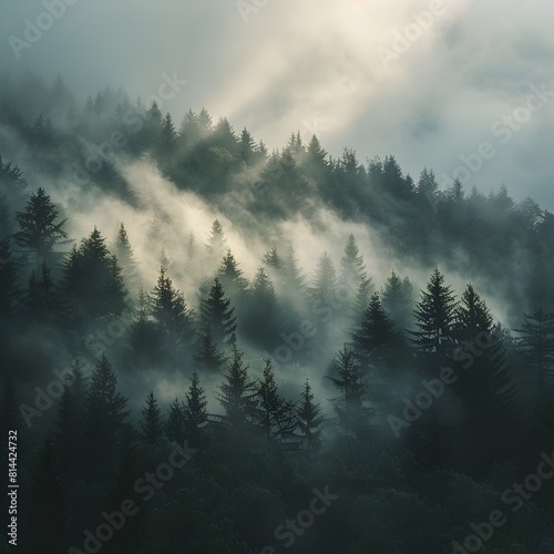 forest, landscape, nature, tree, fog, mist, mountain, dawn, scenery, mountain, environment, wilderness, sky, weather, mood, mystery, tranquil, serene, calmness, scenic, moody, atmospheric, hazy, misty, aethereal, dreamlike, mystical, eerie, gloomy, overcast, illumination, light, shadow, silhouette, texture, pattern, abstract, majestic, rugged, picturesque, idylli, peaceful, calming, remote, untouched, wild, adventure, journey