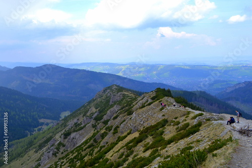 mountain, landscape, nature, sky, mountain, view, blue, summer, hill, rock, cloud, travel, green, forest, vale, peak, cloud, high, scenery, sea, tree, scenic, hiking, tour tourism, lake, tatry, tatra, ridge