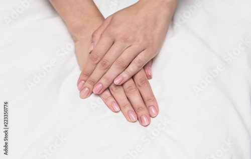 Nails manicure with file. Woman beautiful nail care. after filling.