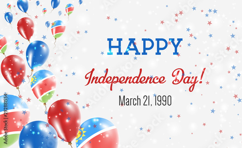 Namibia Independence Day Greeting Card. Flying Balloons in Namibia National Colors. Happy Independence Day Namibia Vector Illustration.