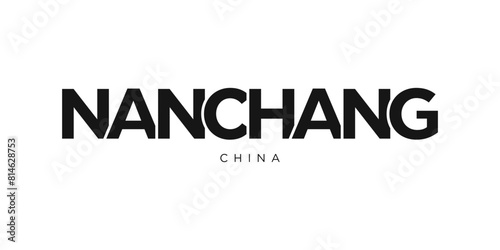 Nanchang in the China emblem. The design features a geometric style, vector illustration with bold typography in a modern font. The graphic slogan lettering.