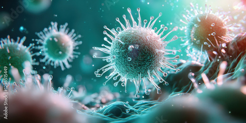 nanotechnology concept, Digital illustration of viruses in microscopic view, showcasing their structure and details