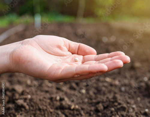 seed, planting, garden, sowing, hand, plant, bed