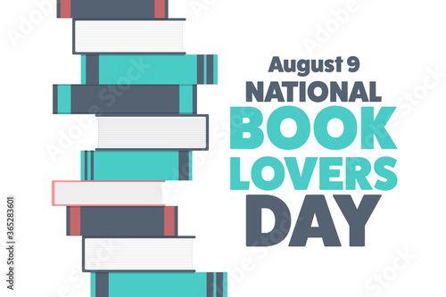 National Book Lovers Day. August 9. Holiday concept. Template for background, banner, card, poster with text inscription. Vector EPS10 illustration.