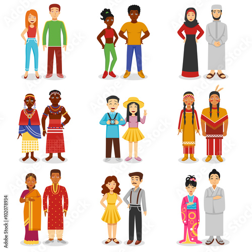 decorative, set, collection, icon, object, symbol, element, emblem, design, concept, different, people, nation, national, couple, nationality, race, country, japanese, indian, african american, european, vietnamese, african, muslim, asian, arabic, family, society, land, belief, continent, area, man, woman, american, region, earth, connection, happy, traditional, clothes, culture, custom, flat, isolated, illustration