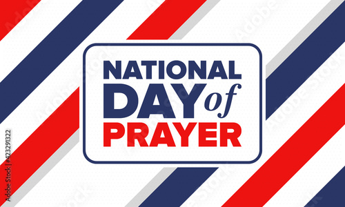National Day of Prayer in United States. First Thursday of May. Annual day when Americans turn to God in prayer and meditation. Poster, card, banner and background. Vector illustration