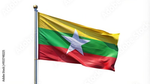 National flag of Myanmar isolated on white background, Myanmar, flag, national, symbol, design, yellow, green, red