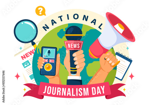 National Journalism Day Vector Illustration Recognizing and Appreciating the Tireless Efforts of Journalists, Featuring Tools and Equipment Design