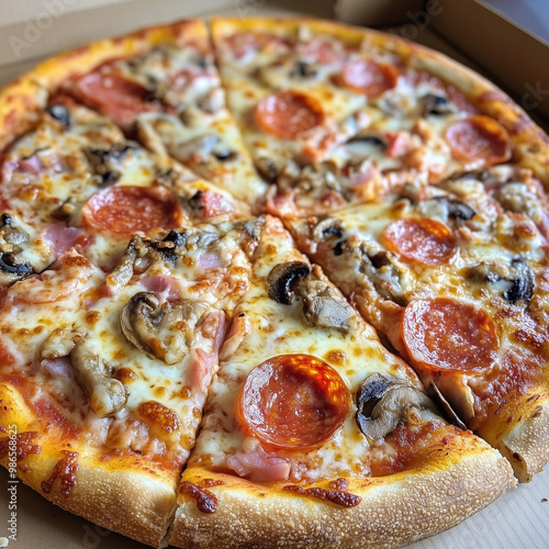 pizza, pepperoni, food, cheese, italian, mozzarella, meal, crust, dinner, tomatoes, baked, slice, snack, lunch, meat, cookery, sauce, white, pie, dough, salami, sausage, pepper, tasty, delicious, fresh, eatery, plate, fast, mushroom, ham, basil, olive, epicure, italy