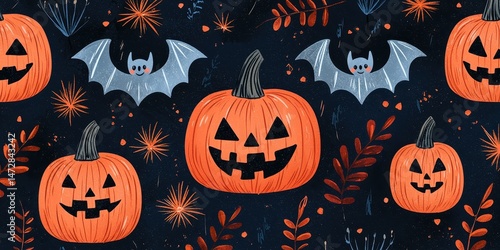 national, pumpkin, day, halloween, celebration, motif, visual, skittish, unique, horror, playful, vibrant, artwork, creativity, seasonal, harvest, festive, party, graphic, imagery, eerie, bat, whimsical, treat, trick, creepy, night, fun, charming, illustration, cartoon, symbol, orange, leaf, dark, cheerful, holiday, design, pattern, decoration, nature, background, culture, traditional, autumn