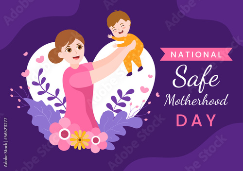 National Safe Motherhood Day on April 1 Illustration with pregnant Mother and Kids for Web Banner or Landing Page in Flat Cartoon Hand Drawn Templates