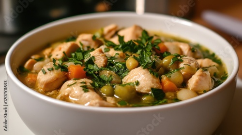 chicken, stew, vegetable, bowl, parsley, hearty, delicious, savoury, meal, dish, cooking, cookery, homemade, receipe, broth, carrot, pea, onion, herb, dinner, lunch, soup, healthy, alimentary, aromatic, warm, comforting, culinary, kitchen, protein, food, white, garnish, fresh, green, served, tasty, appetising, filling, chunk, tender, piping, hot