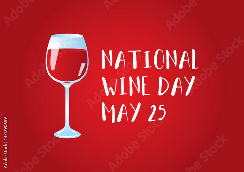 National Wine Day vector. Glass of wine vector. Glass of red wine icon isolated on a red background. Wine Day Poster, May 25. Important day