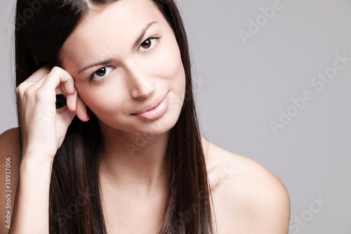 woman, young, smile, beautiful, beauty, beige, brunette, care, caucasian, clean, complexion, cosmetic, cute, eye, face, female, fresh, freshness, happiness, happy, head, lip, natural, pretty, pure, purity, sensual, skin, skincare, smooth, spa, studio, vitality, well-being, wellness
