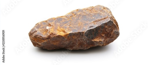 Natural brown mineral rock with rough texture and jagged edges isolated on white background suitable for geological and educational purposes Copy Space