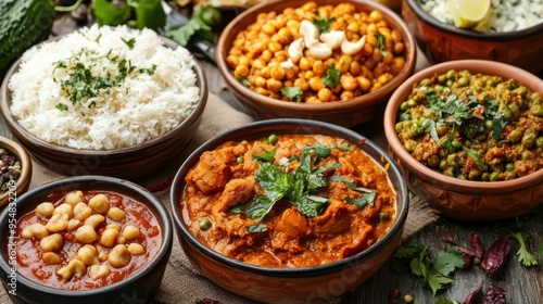 Natural food (various cuisines) Different food cooked on a wooden table Food backgrounds: table filled with large variety of food
