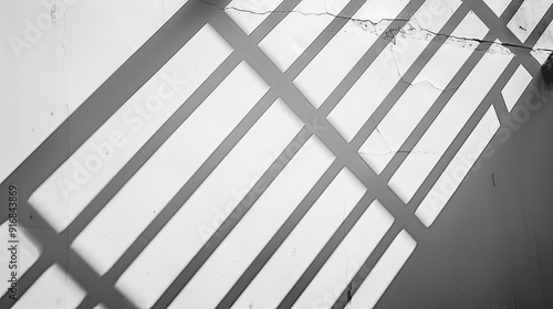 Natural light rays casting minimal shadows on white wall, trace monotone