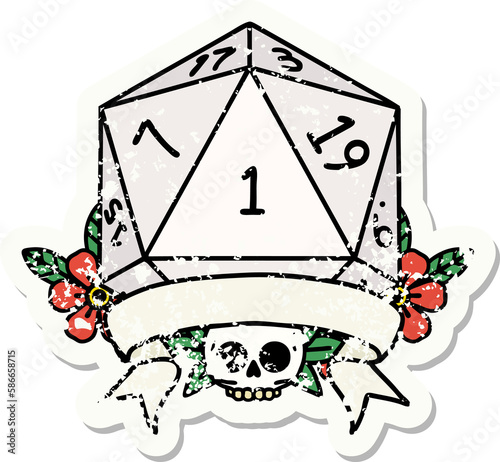 natural, 1, 1, dice, die, unlucky, bankruptcy, disaster, bad, luck, scroll, banner, dragon, game, art, illustration, signs, symbol, drawing, tattoo, retro, style, artwork, icon, sticker, grunge, distressed, worn, old