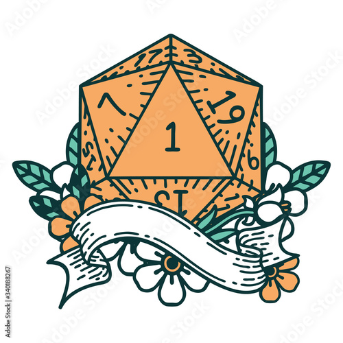 natural, 1, 1, dice, die, unlucky, bankruptcy, disaster, bad, luck, scroll, banner, dragon, game, art, illustration, signs, symbol, drawing, tattoo, retro, style, artwork, icon