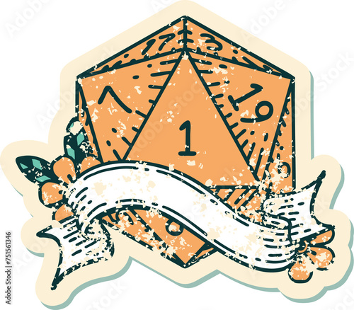 natural, 1, 1, dice, die, unlucky, bankruptcy, disaster, bad, luck, scroll, banner, dragon, game, art, illustration, signs, symbol, drawing, tattoo, retro, style, artwork, icon