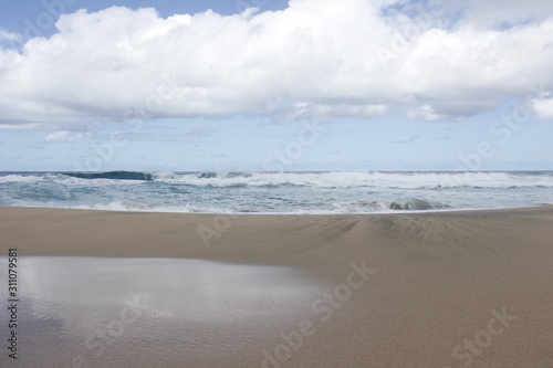 beach, sea, sand, ocean, sky, water, coast, blue, wave, summer, nature, landscape, cloud, wave, shore, horizon, vacation, cloud, travel, beautiful, seascape, sun, coastline, tropical