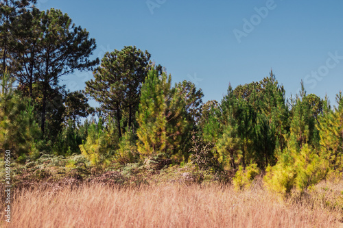 nature, sky, tree, landscape, forest, grass, tree, green, blue, field, summer, meadow, hill, outdoors, pine, cloud, road, rural, day, cloud, wood, autumn, mountain, beauty