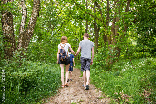 Naturverbundene Familie macht Waldspaziergang