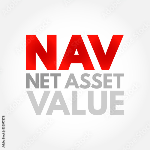 NAV Net Asset Value - company's total assets minus its total liabilities, acronym text concept background