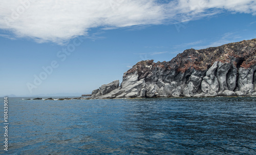 Navigating the rocky mountain formations on CORONADO Island in Loreto Baja California Sur. Natural landscapes, seascapes and geology of MEXICO.