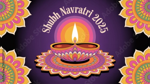 Navratri 2025 Greetings Shubh Festival with Decorative Diya