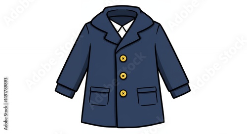 coat, blue, clothing, jacket, illustration, fashion, design, winter, formal, buttons, pocket, collar, isolated, graphic, style, line, art, flat, colours, casual attire, top, outerwear, classic, simple, vector, gold, white, background, image