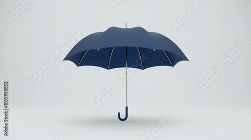 Navy blue umbrella open against a white backdrop