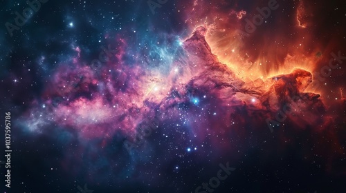 Nebula and stars in deep space, with a vibrant mix of colors and cosmic dust