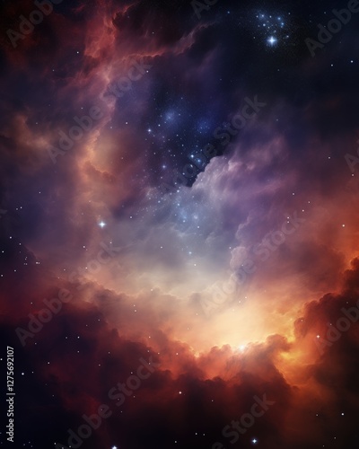 Nebula with swirling cosmic dust and celestial star clusters. Space background for sci-fi use