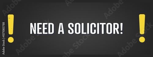 Need a solicitor.. A blackboard with white text. Illustration with grunge text style.